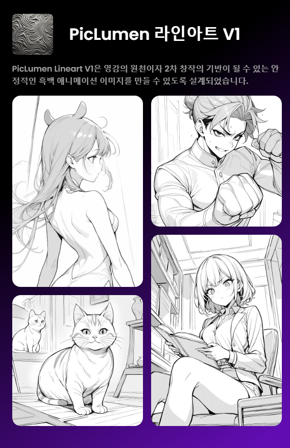 9. PicLumen 라인아트 V1 – 흑백 만화풍 드로잉 생성
