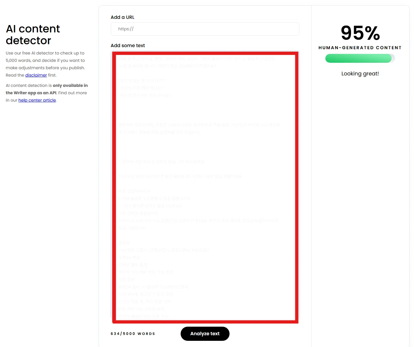 해당 사이트에 붙여넣기 후 내 글이 AI글로 보이는지 확인해보세요