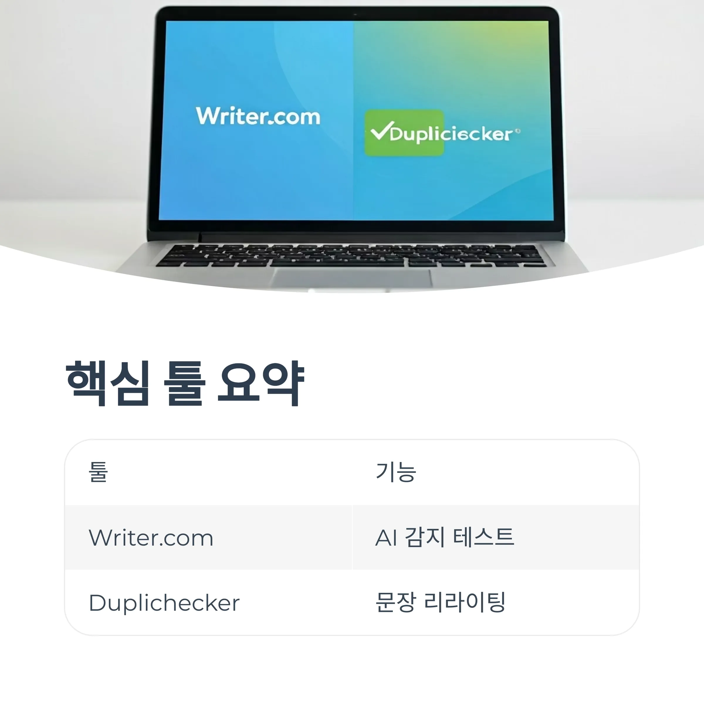 | 2 | AI 탐지 확인 | Writer.com 등으로 감지 여부 체크 → AI 티 제거 및 품질 확인 |
