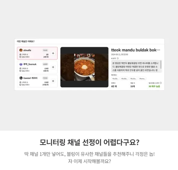 - 카테고리별·키워드 기반으로 유망 채널 탐색 가능